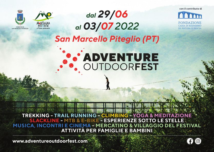 Nel 2022 l'Adventure Outdoor Fest torna, grazie al contributo della Fondazione Caript, dal 29 Giugno al 3 Luglio a San Marcello Piteglio (Pt), sulla Montagna Pistoiese.